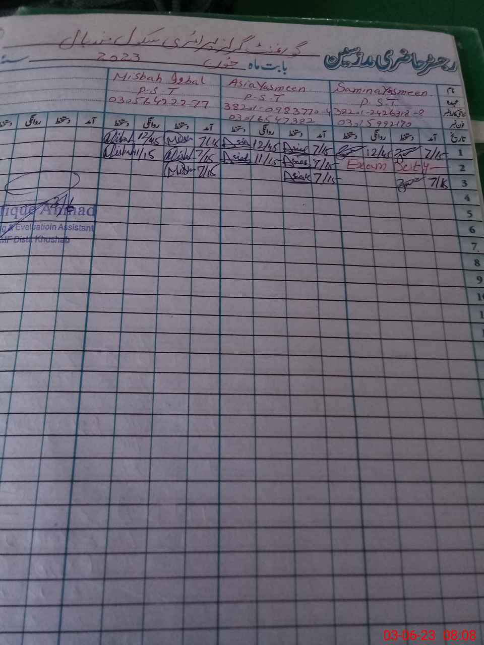 | Name: SA**** YA**** Designation: (School Headmaster's/Headmistress's) PST Phone/Cell Number: 03**** |