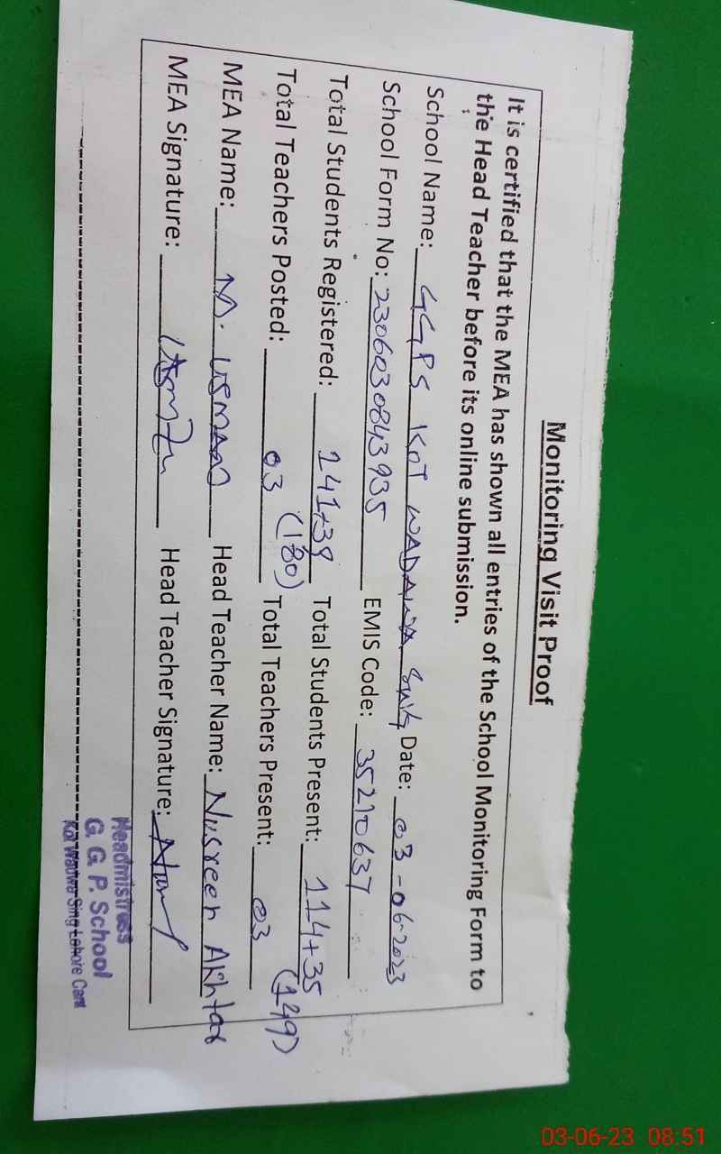 | EMIS Code: 35210637 | Name of School: GGPS KOT WADAWA SINGH BADIAN ROAD | |||