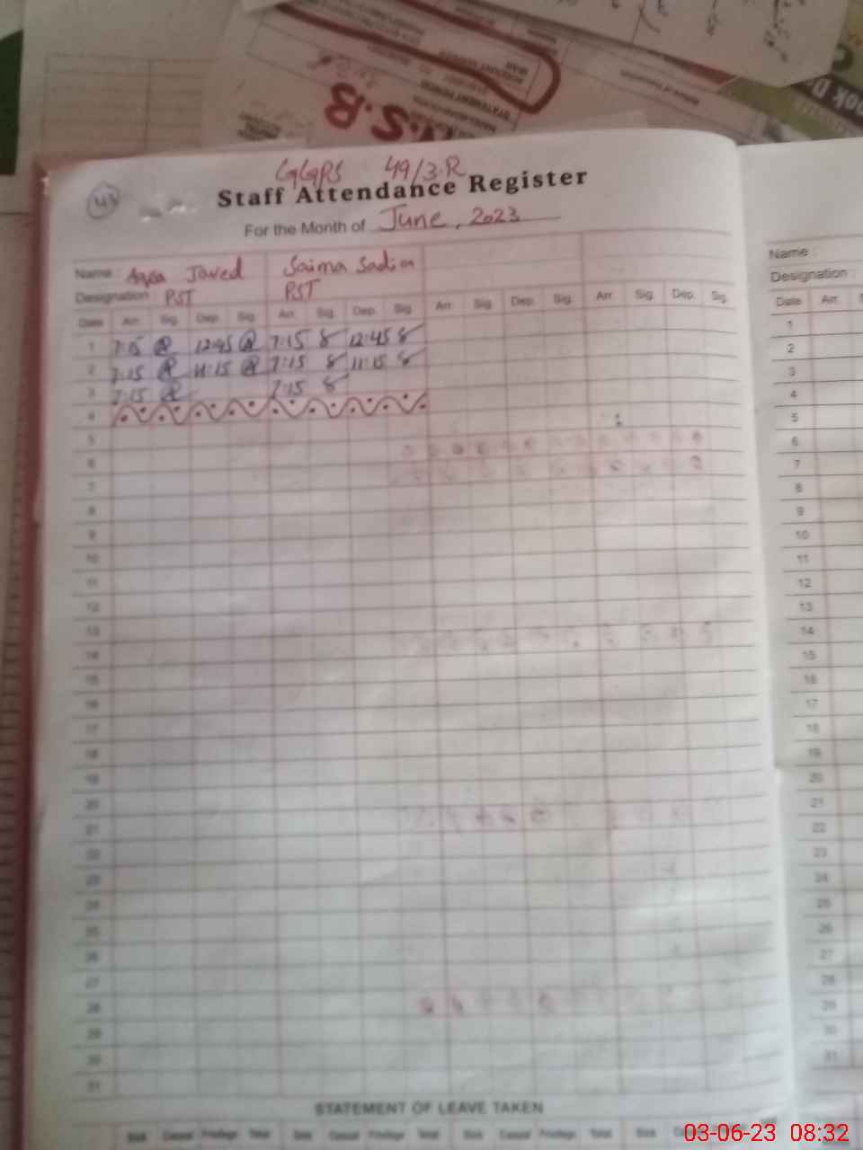 | Name: Sa**** Sa**** Designation: (School Headmaster's/Headmistress's) PST Phone/Cell Number: 03**** |