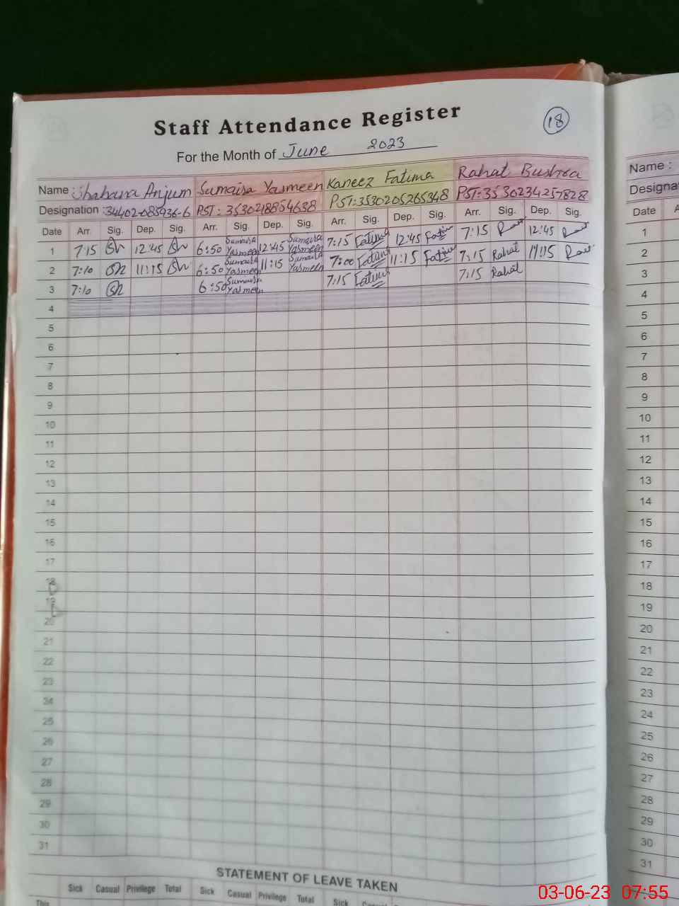 Leave Type | Remarks for Today (Leave,Training, Exam,Absent,Late, Other Duty) |