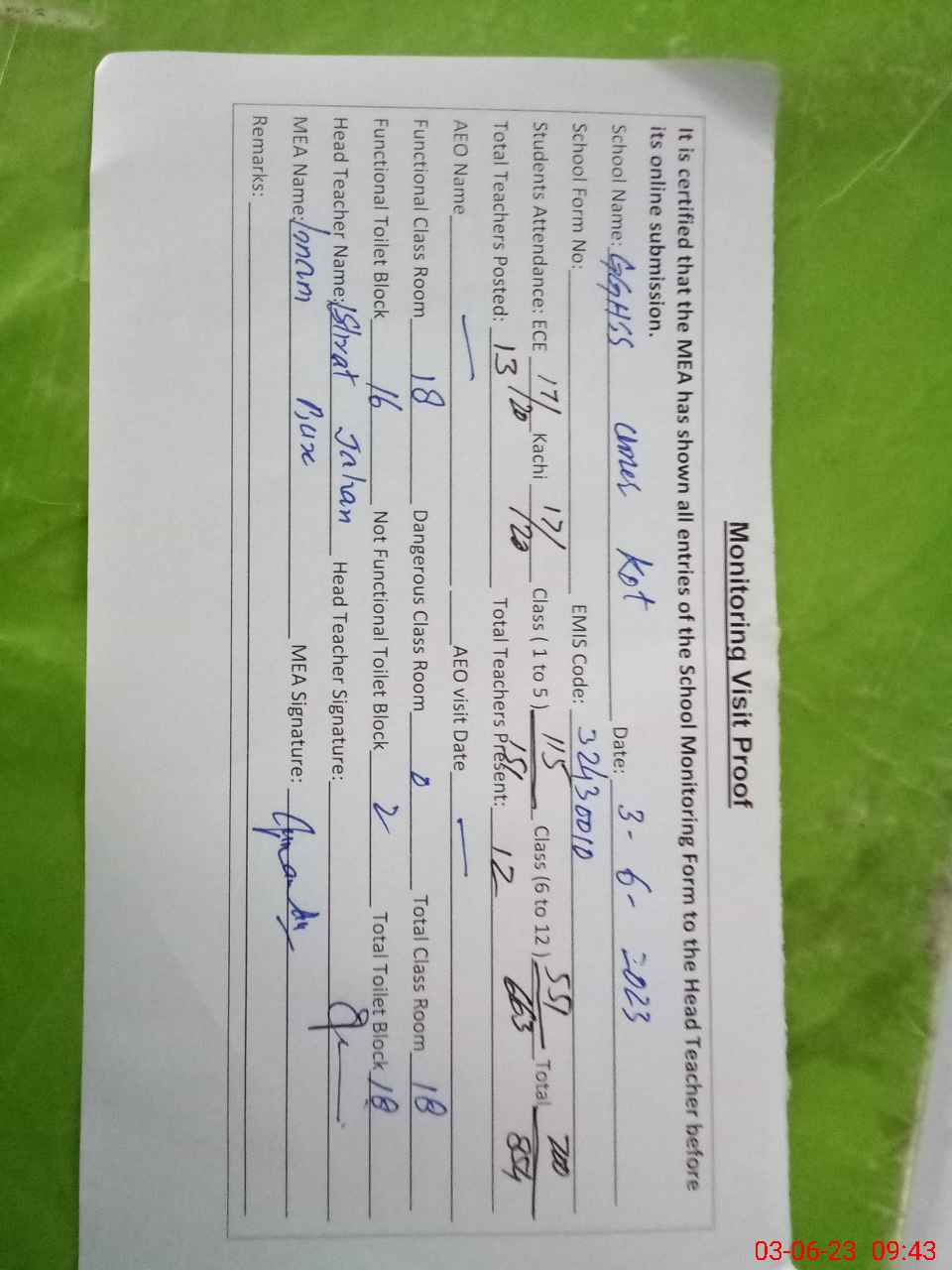 | EMIS Code: 32430010 | Name of School: GGHSS UMER KOT | |||