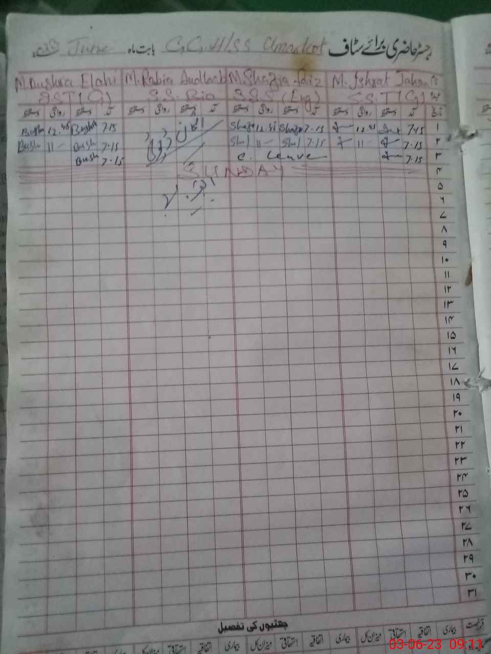 | Remarks (Use Separate Page if Required): Taleem record not available in school orally record was written in rough paper One teacher was on casual leaves and other was on exam duty | |||||