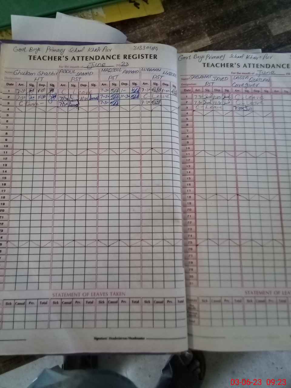 | Name: GH**** SH**** Designation: (School Headmaster's/Headmistress's) PST Phone/Cell Number: 03**** |