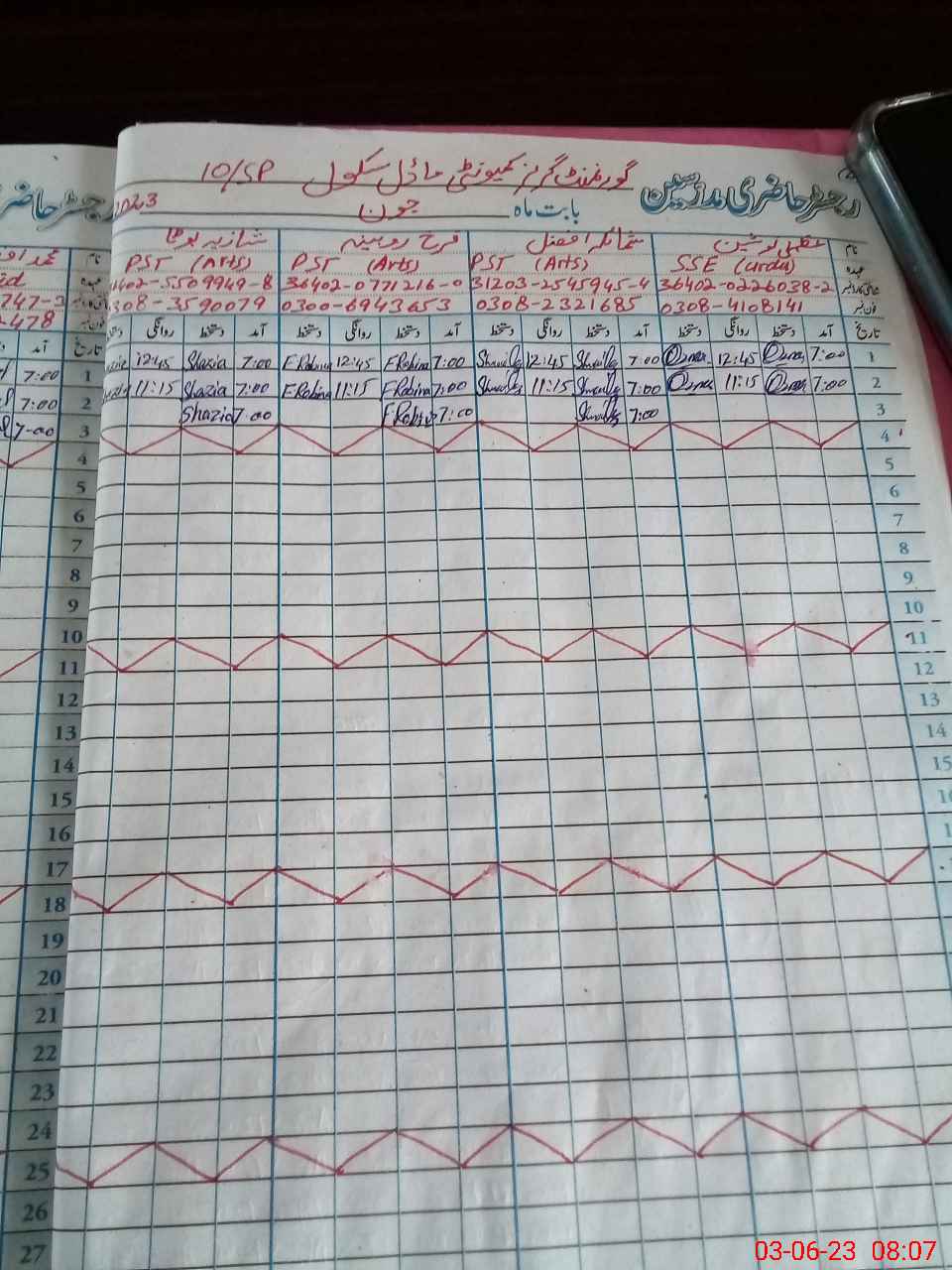 | Name: UZ**** NO**** Designation: (School Headmaster's/Headmistress's) SSE ( Urdu ) Phone/Cell Number: 03**** |