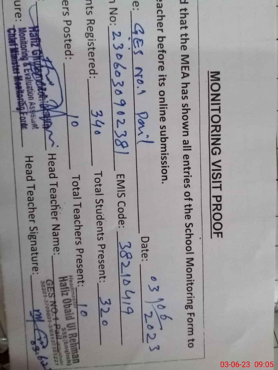 | Name: Ma**** As**** Hu**** Aw**** Designation: (School Headmaster's/Headmistress's) Pst Phone/Cell Number: 03**** |
