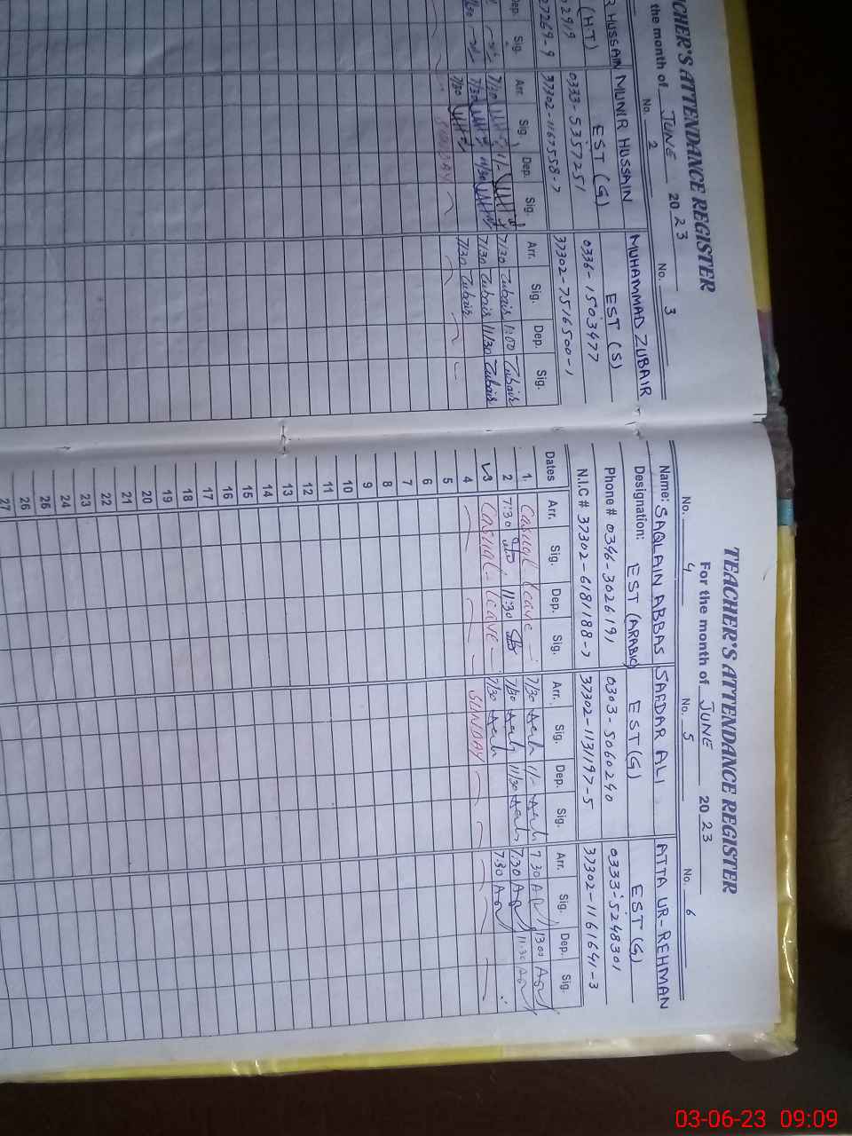 | Name: AB**** RE**** Designation: (School Headmaster's/Headmistress's) Hm Phone/Cell Number: 03**** |