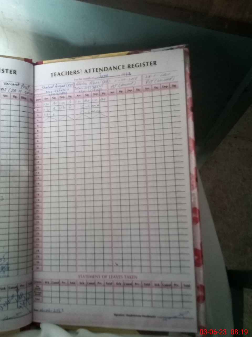 | Name: Mu**** Ak**** Ab**** Designation: (School Headmaster's/Headmistress's) PST Phone/Cell Number: 03**** |