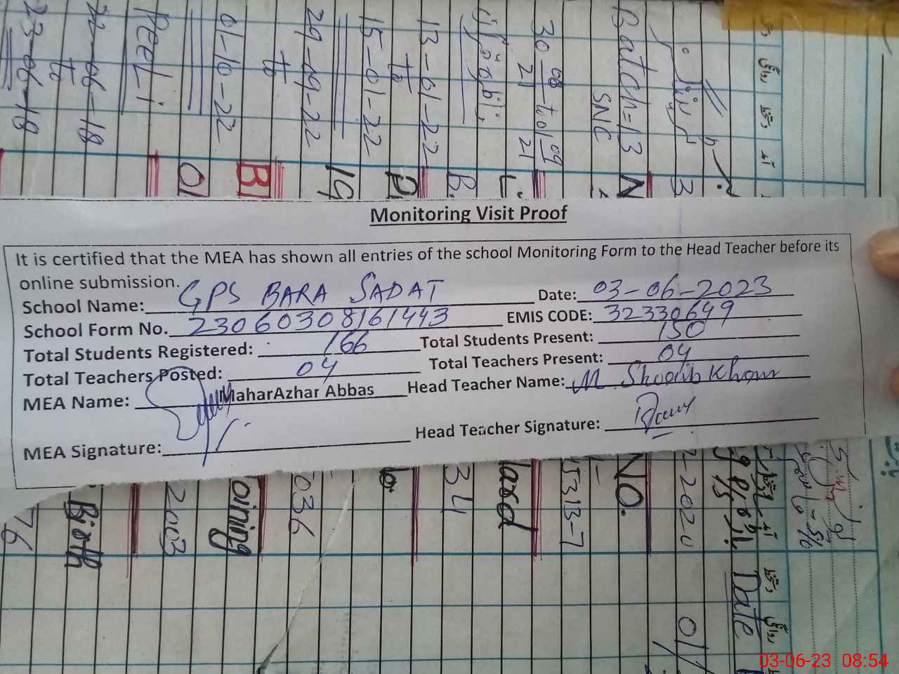 | EMIS Code: 32330649 | Name of School: GPS BARA SADAT | |||