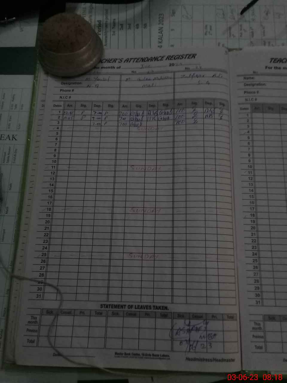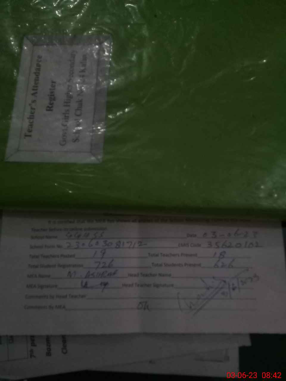 | Name: SA**** ME**** Designation: (School Headmaster's/Headmistress's) I C PRINCIPAL Phone/Cell Number: 03**** |