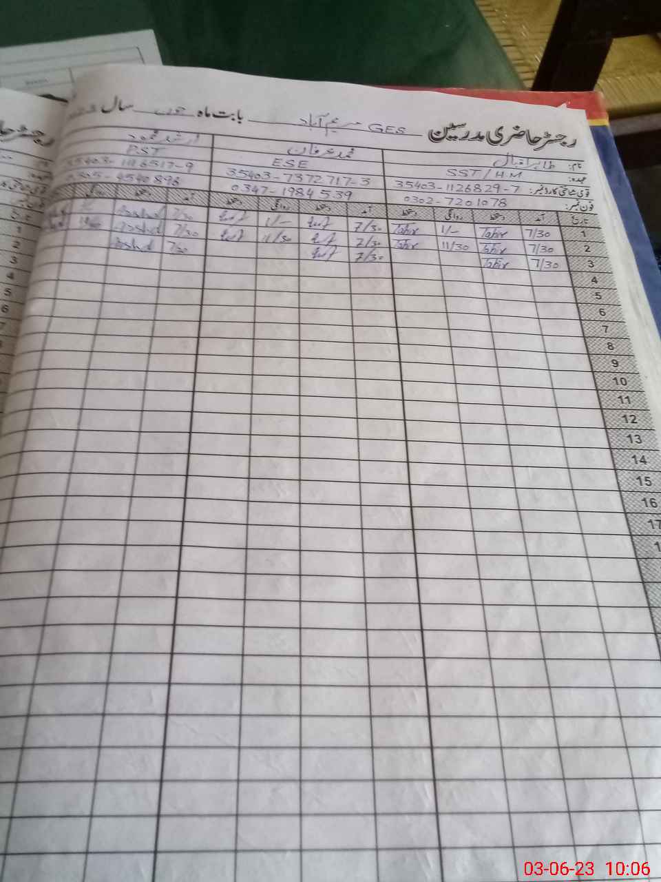 | Name: EH**** EL**** Designation: (School Headmaster's/Headmistress's) EST ( ENGLISH) Phone/Cell Number: 03**** |