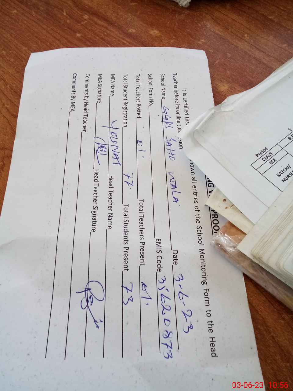 | Attendance Register | Head Teacher | MEA with School | Visit Proof |