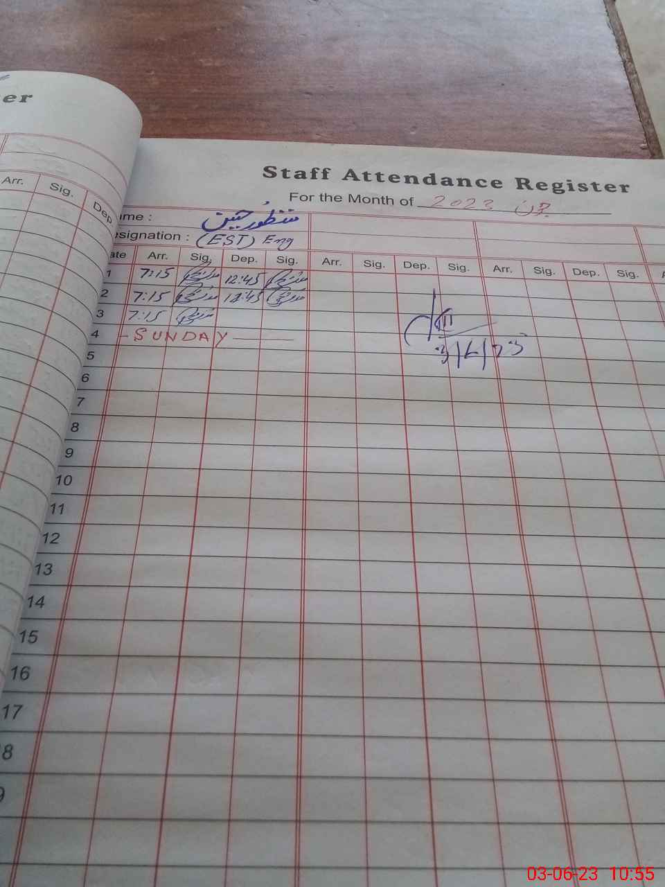 | CNIC | Full Name | Designation | R/C | Absence During Last Calender Month |