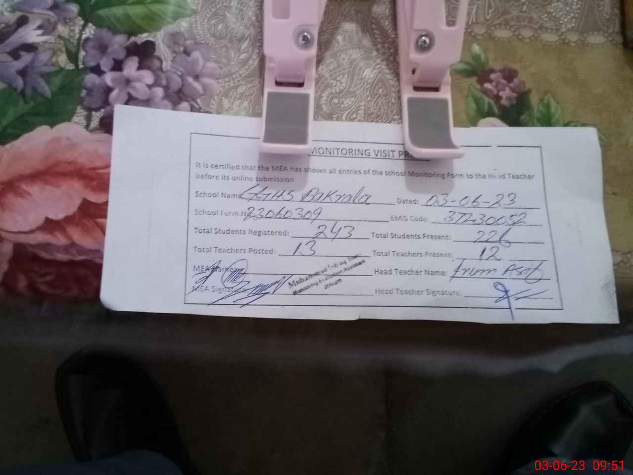 | EMIS Code: 37230052 | Name of School: GGHS BAKRALA | |||