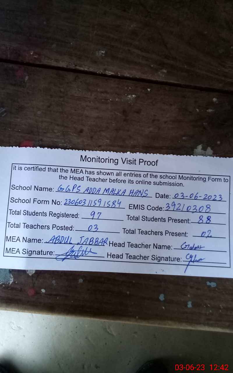 | EMIS Code: 39210308 | Name of School: GGPS ADDA MALKA HANS | |||