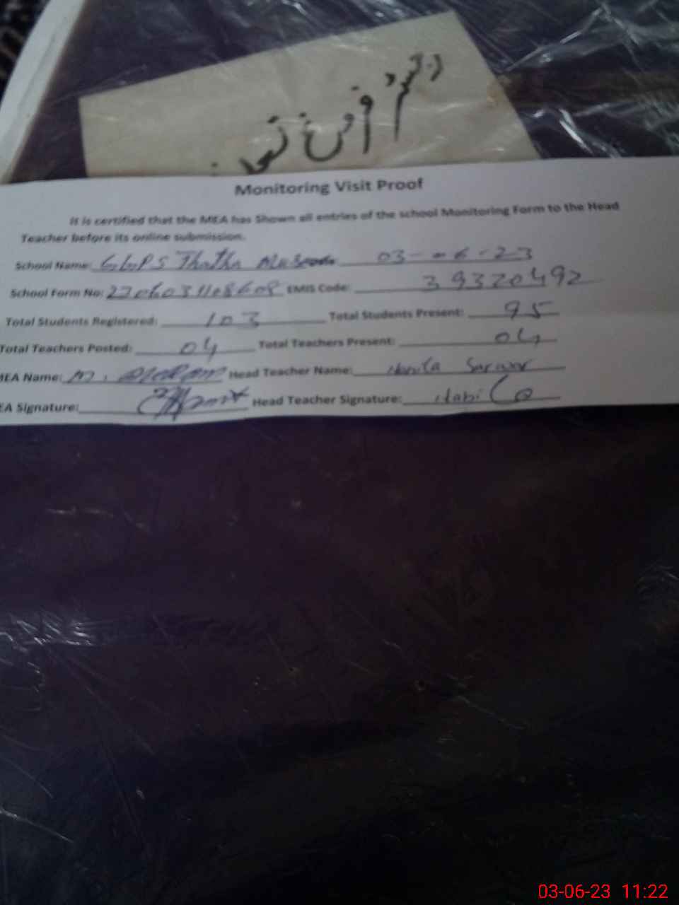 | Attendance Register | Head Teacher | MEA with School | Visit Proof |