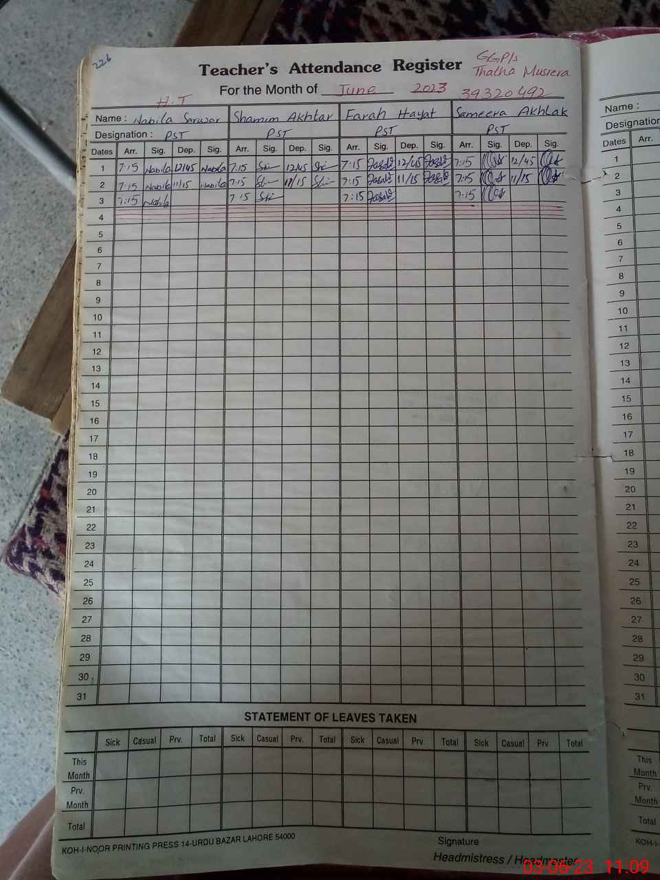| Name: Na**** Sa**** Designation: (School Headmaster's/Headmistress's) PST Phone/Cell Number: 03**** |