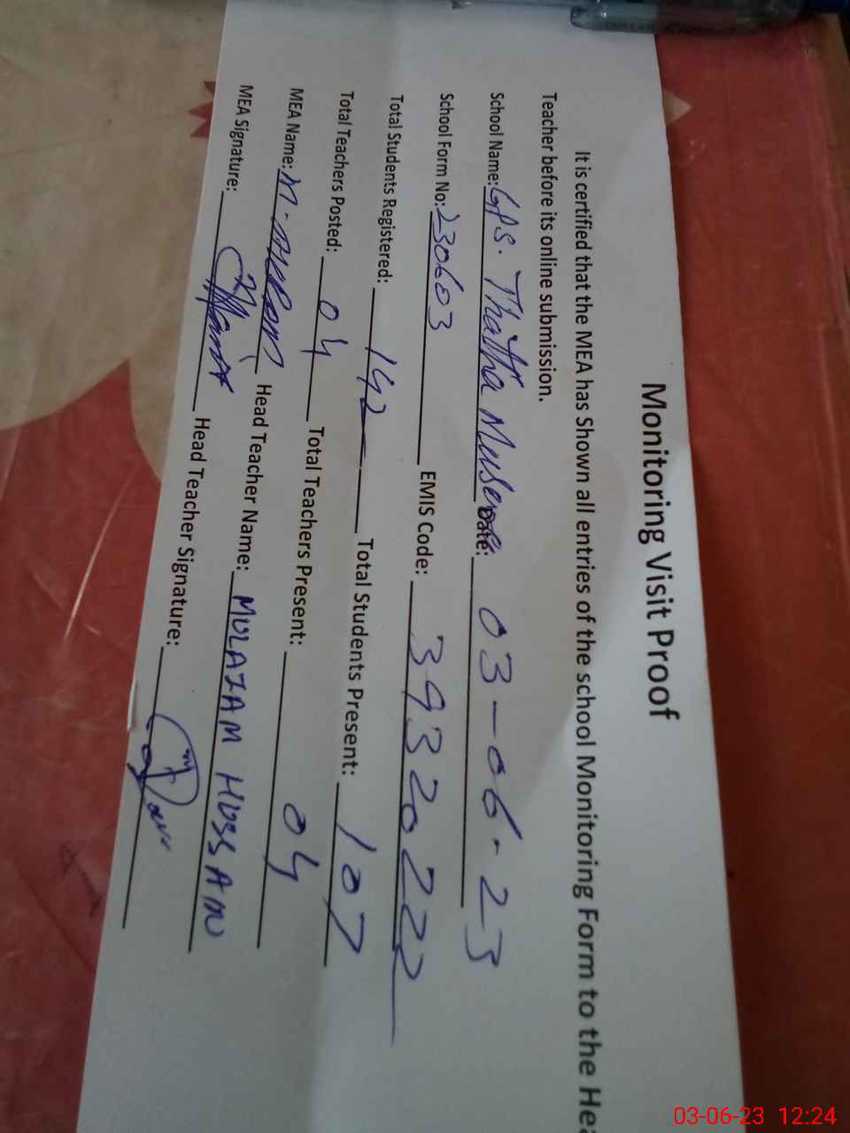 | EMIS Code: 39320222 | Name of School: GPS THATHA MUSRAIRA | |||