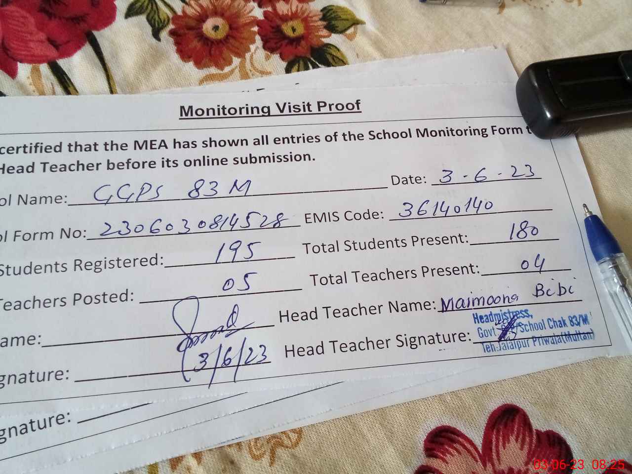 | Name: Me**** Bi**** Designation: (School Headmaster's/Headmistress's) PST Phone/Cell Number: 03**** |