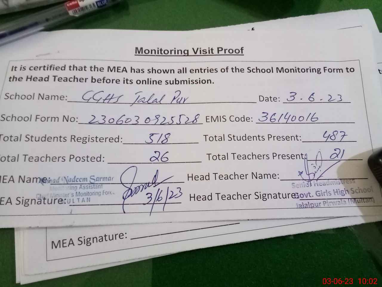 | EMIS Code: 36140016 | Name of School: GGHS JALAL PUR PIRWALA | |||