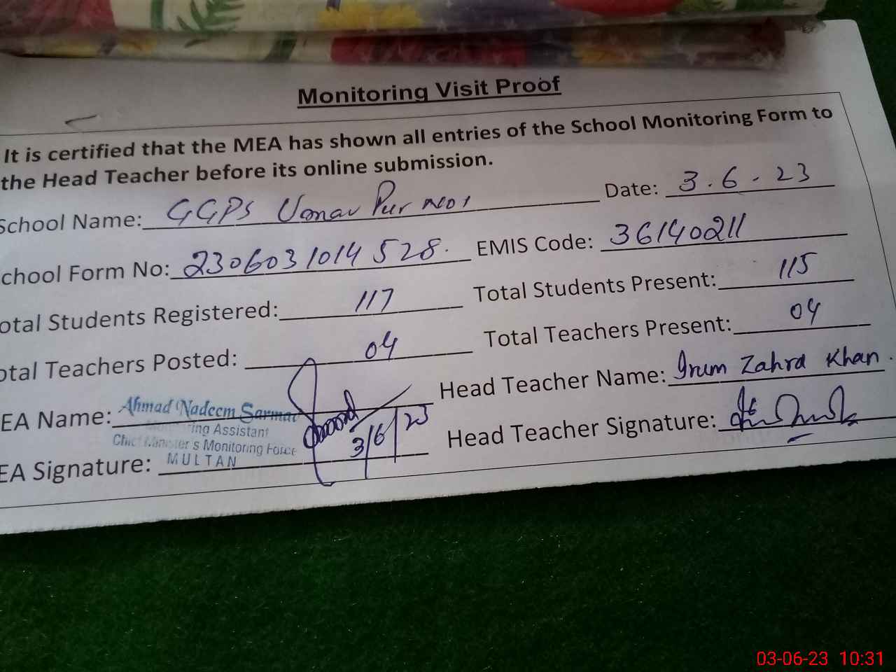 | EMIS Code: 36140211 | Name of School: GGPS UMER PUR 1 | |||
