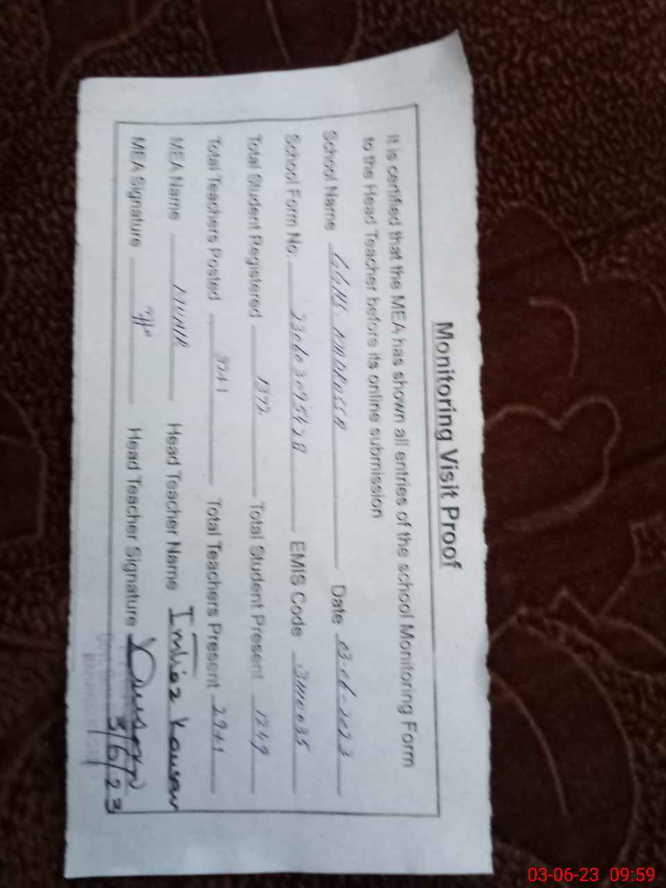 | Name: IM**** KA**** Designation: (School Headmaster's/Headmistress's) PRINCPAL Phone/Cell Number: 03**** |