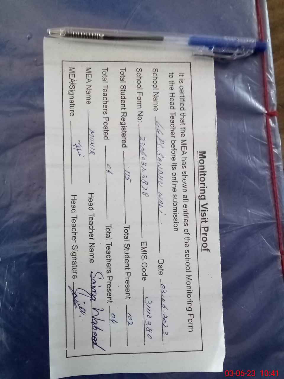 | EMIS Code: 31110380 | Name of School: GGPS SANDHU WALI | |||