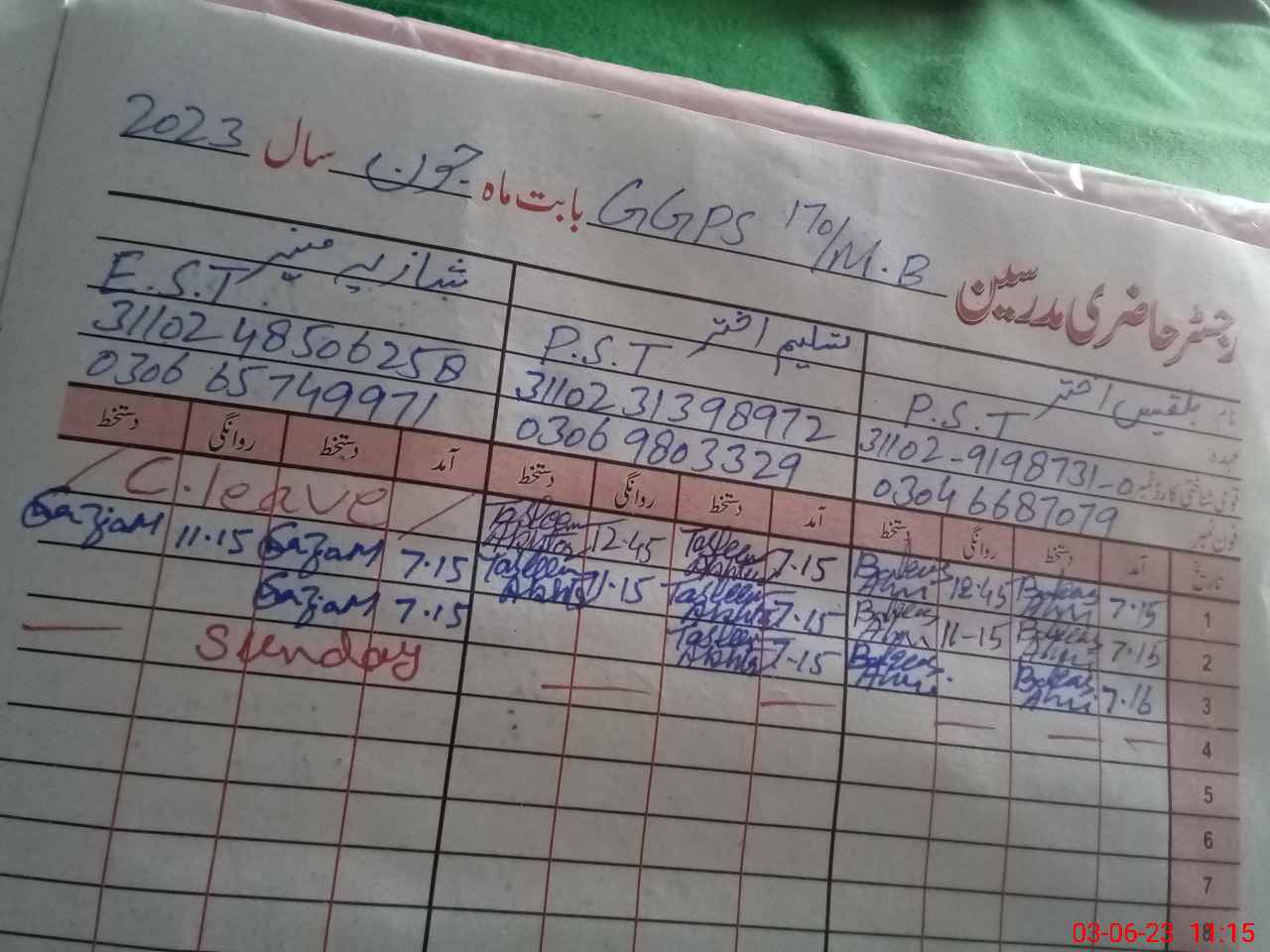 | Name: As**** Sh**** Designation: (School Headmaster's/Headmistress's) PST Phone/Cell Number: 03**** |