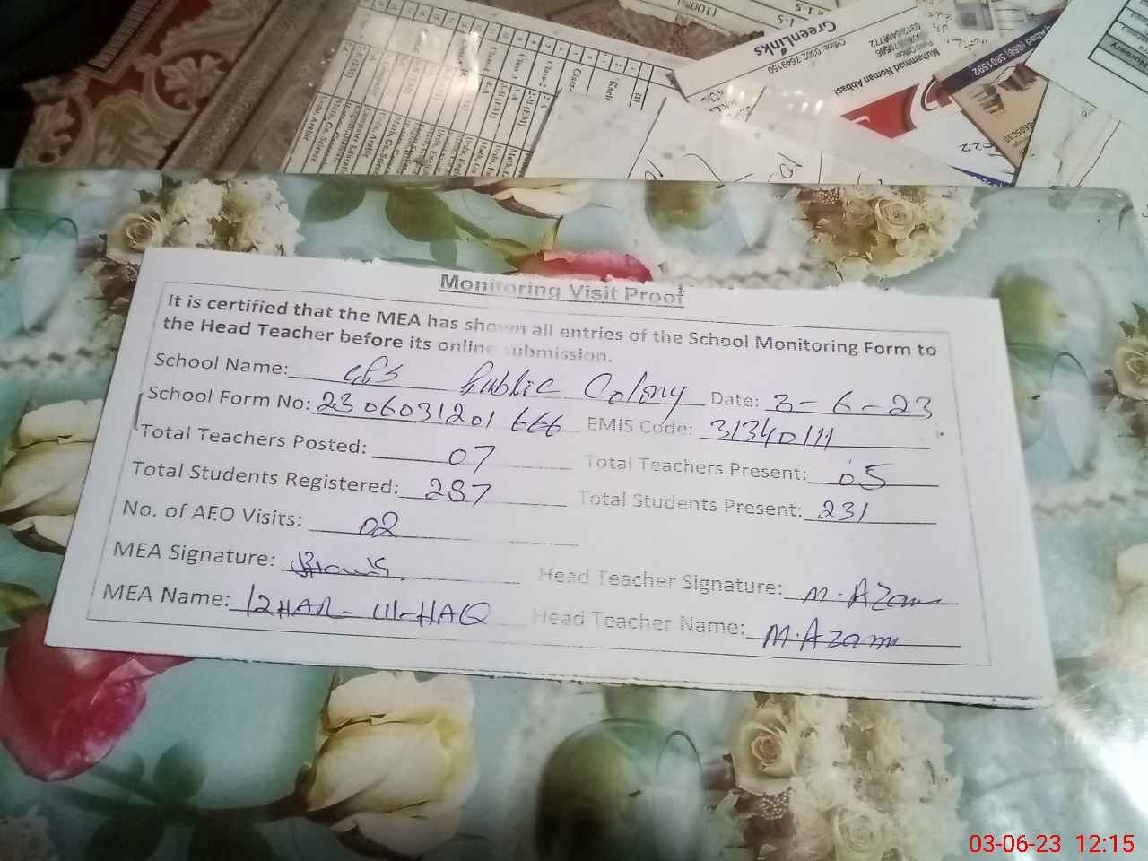 | EMIS Code: 31340111 | Name of School: GPS PUBLIC COLONY | |||
