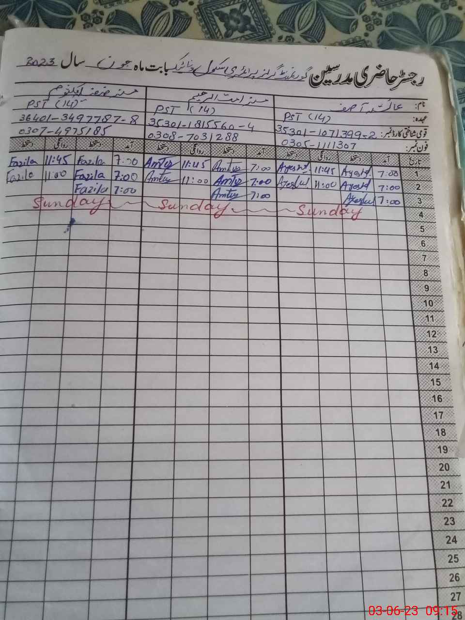 | Name: AY**** AS**** Designation: (School Headmaster's/Headmistress's) ESE ARTS Phone/Cell Number: 03**** |