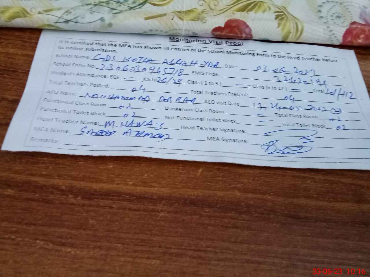 | EMIS Code: 32420199 | Name of School: GPS KOTLA ALLAH YAR | |||