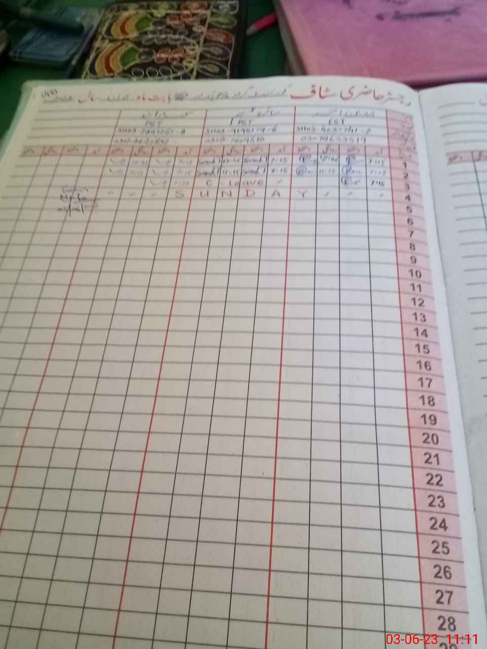 | CNIC | Full Name | Designation | R/C | Absence During Last Calender Month |