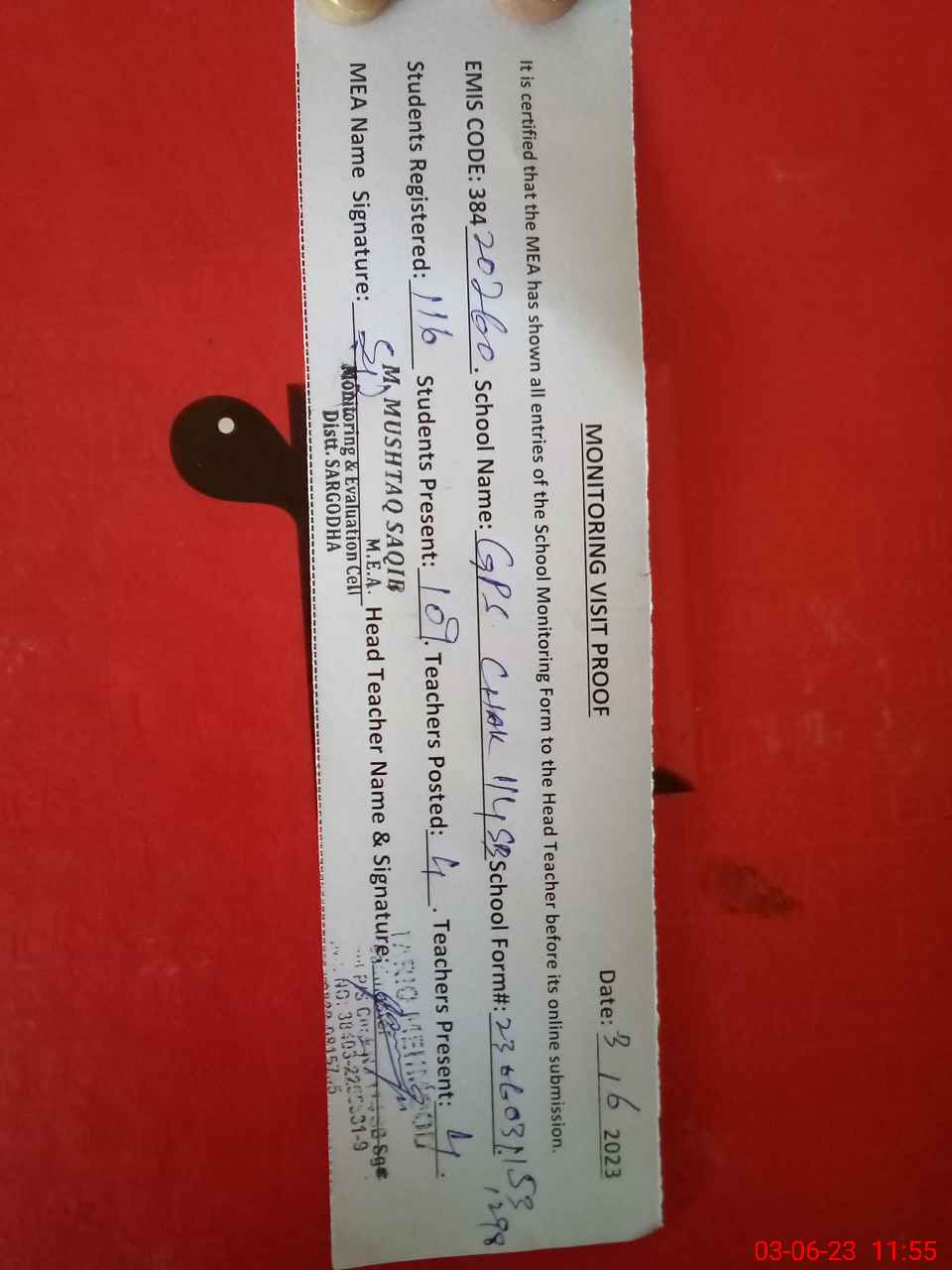 | EMIS Code: 38420260 | Name of School: GPS CHAK NO.114 SB | |||