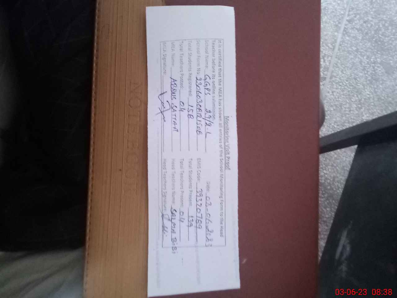 | Attendance Register | Head Teacher | MEA with School | Visit Proof |