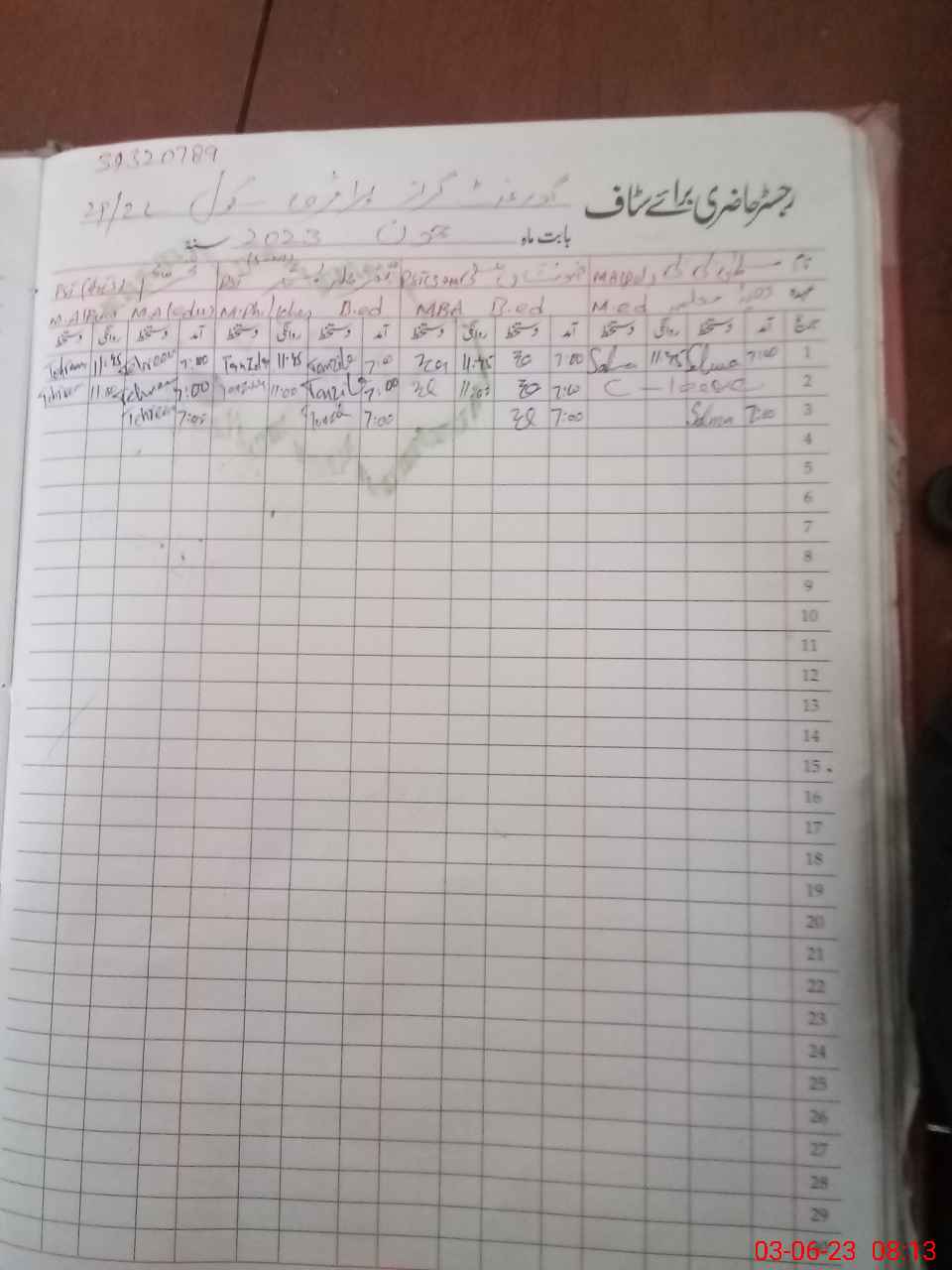 | Name: Zu**** Al**** Designation: (School Headmaster's/Headmistress's) PST Phone/Cell Number: 03**** |