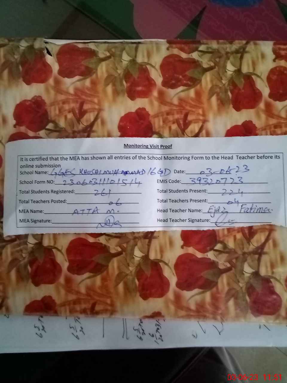 | EMIS Code: 39320723 | Name of School: GGES KHUSHI MUHAMMAD 16/G.D | |||