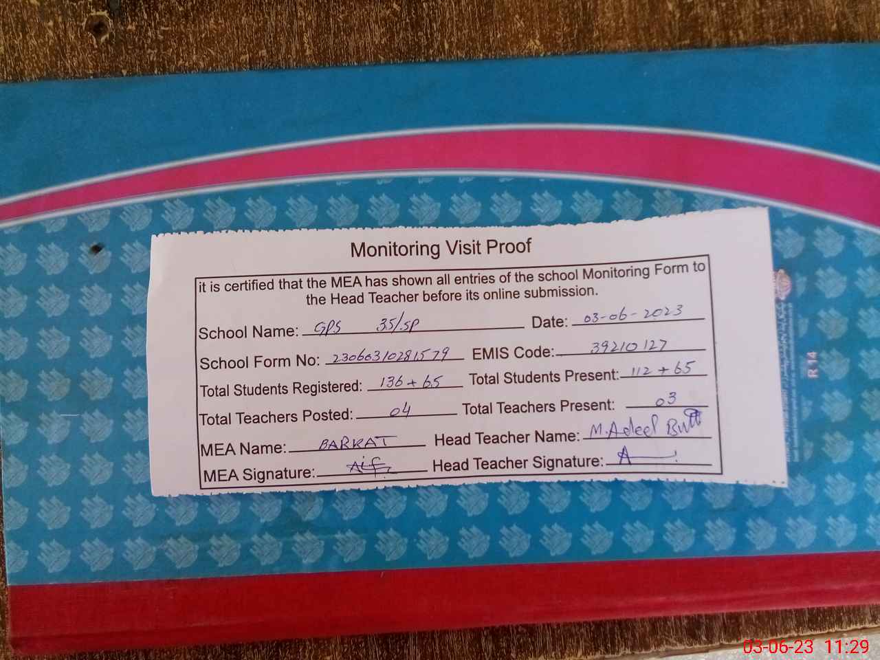 | EMIS Code: 39210127 | Name of School: GPS 35 SP | |||