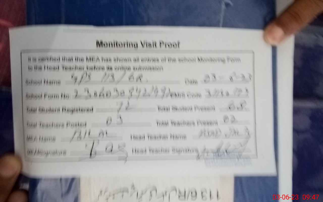 | Attendance Register | Head Teacher | MEA with School | Visit Proof |