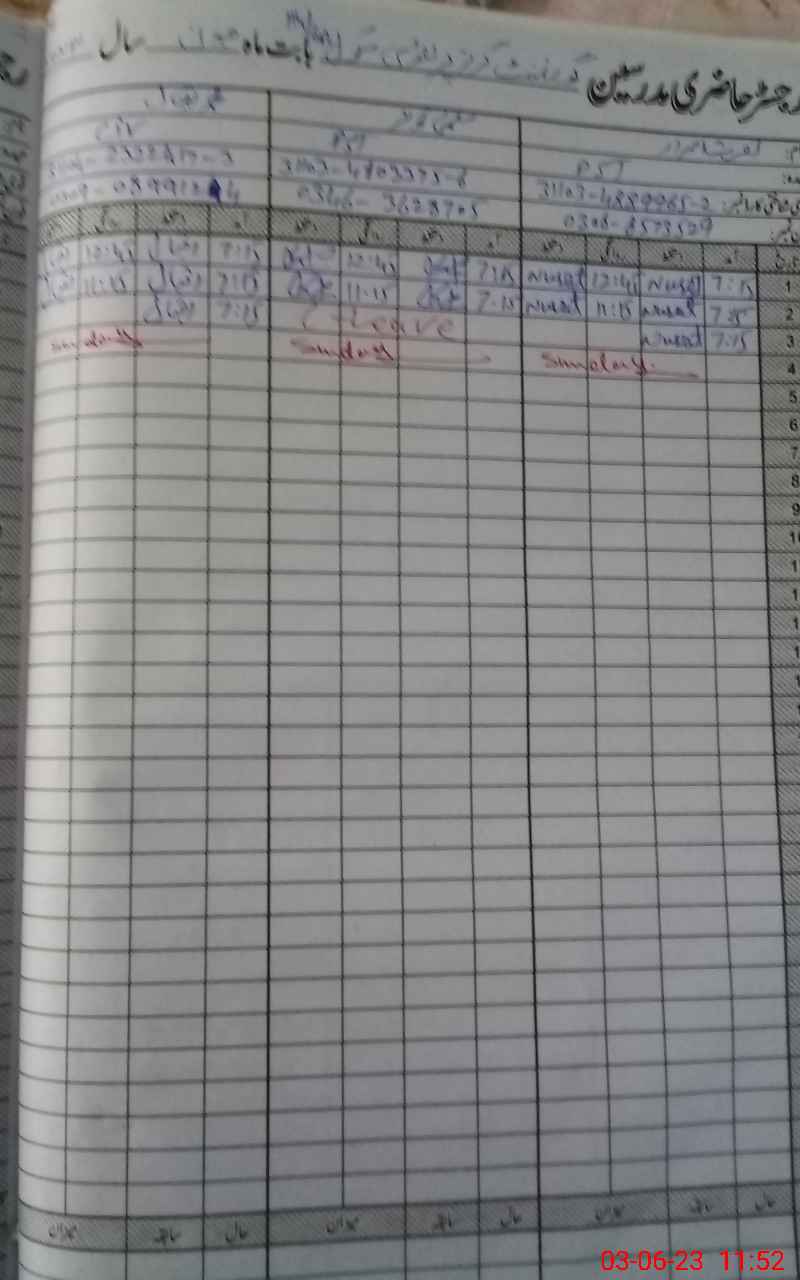 | CNIC | Full Name | Designation | R/C | Absence During Last Calender Month |