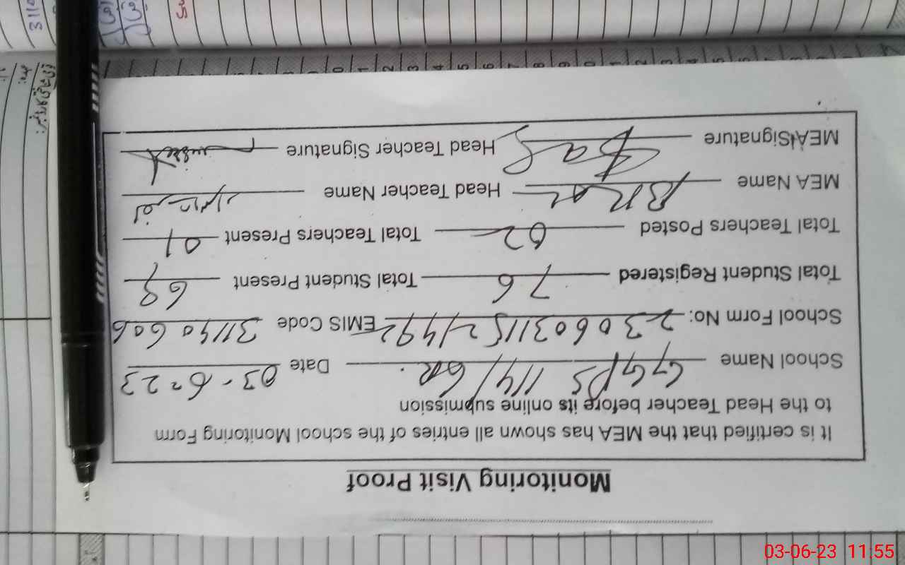 | Attendance Register | Head Teacher | MEA with School | Visit Proof |
