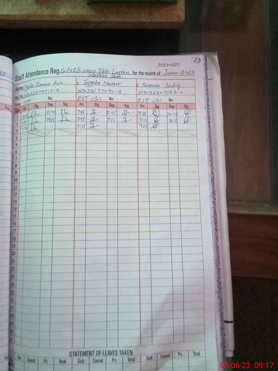 | 31**** | Sa**** Ar**** | PST | Regular | 2 | 20 | 0 | 0 | 0 | 0 | 0 | 0 | 2 | Casual |