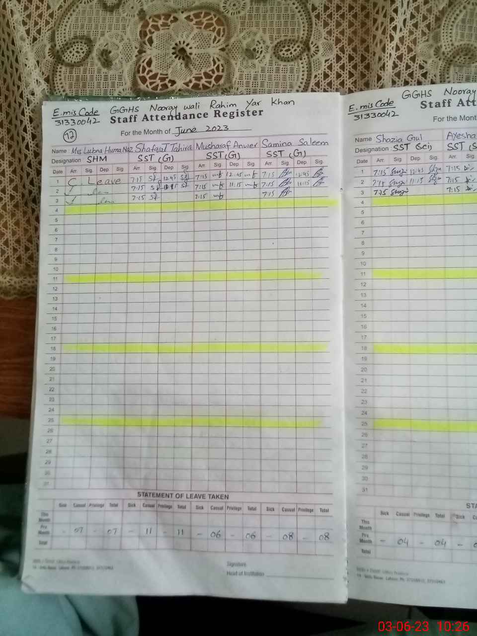 | 31**** | Ta**** Ak**** | Regular | 0 | 22 | 0 | 0 | 0 | 0 | 0 | 0 | 0 | Exam Duty | |