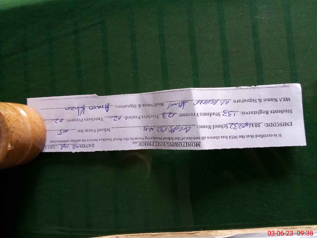 | Remarks (Use Separate Page if Required): 2nd shift is not operating in this school But 2nd shift students are coming in morning Nsb record and school meeting register is not available | |||||