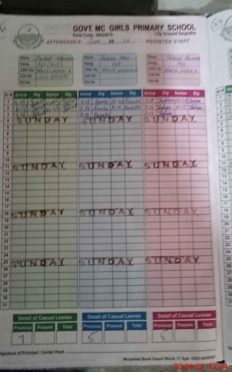 | EMIS Code: 38420670 | Name of School: GGPS MC CITY GROUND SARGODHA | |||