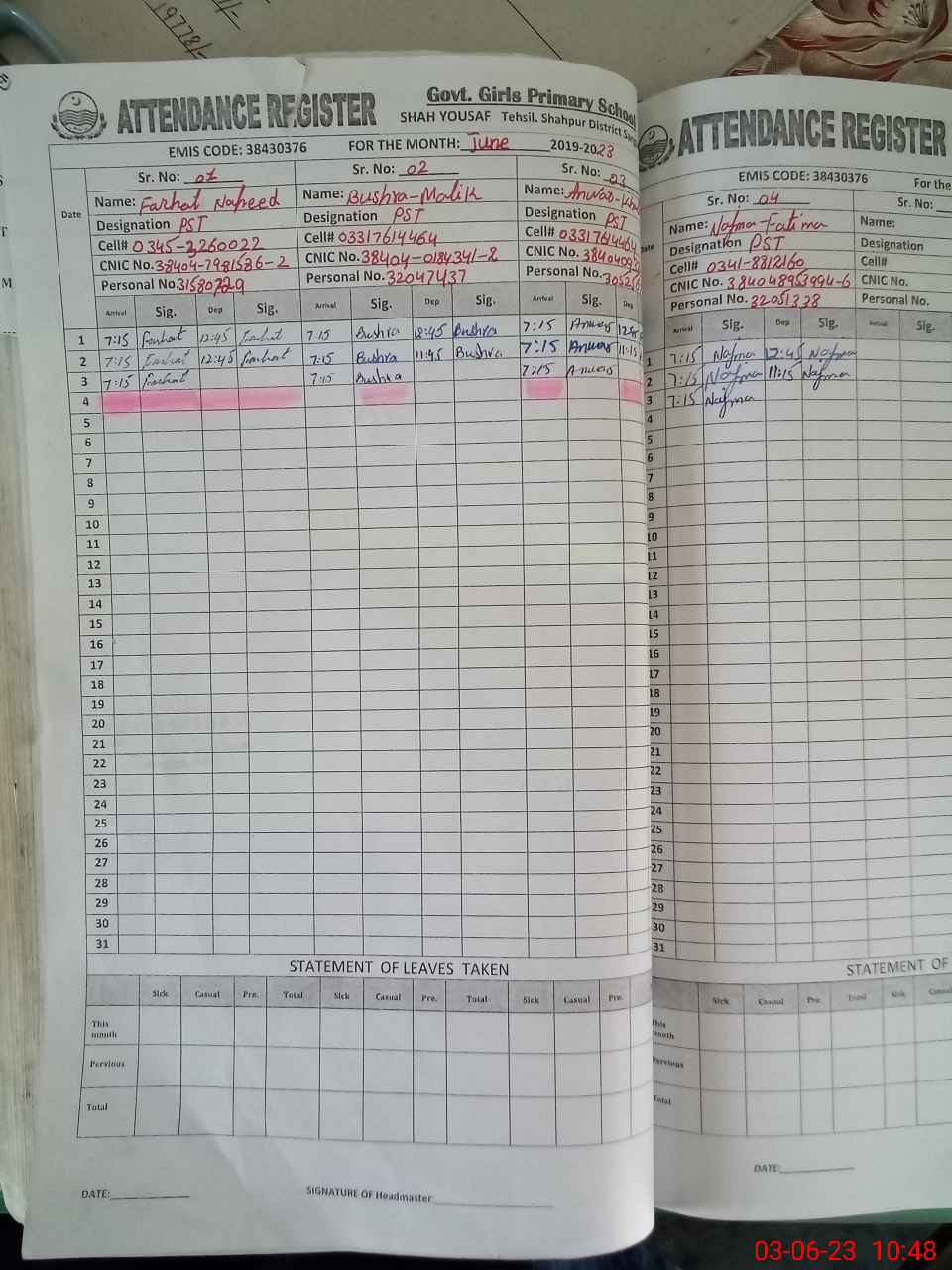 | Name: FA**** NA**** Designation: (School Headmaster's/Headmistress's) PST Phone/Cell Number: 03**** |