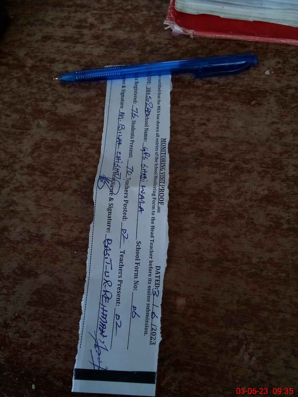 | Attendance Register | Head Teacher | MEA with School | Visit Proof |