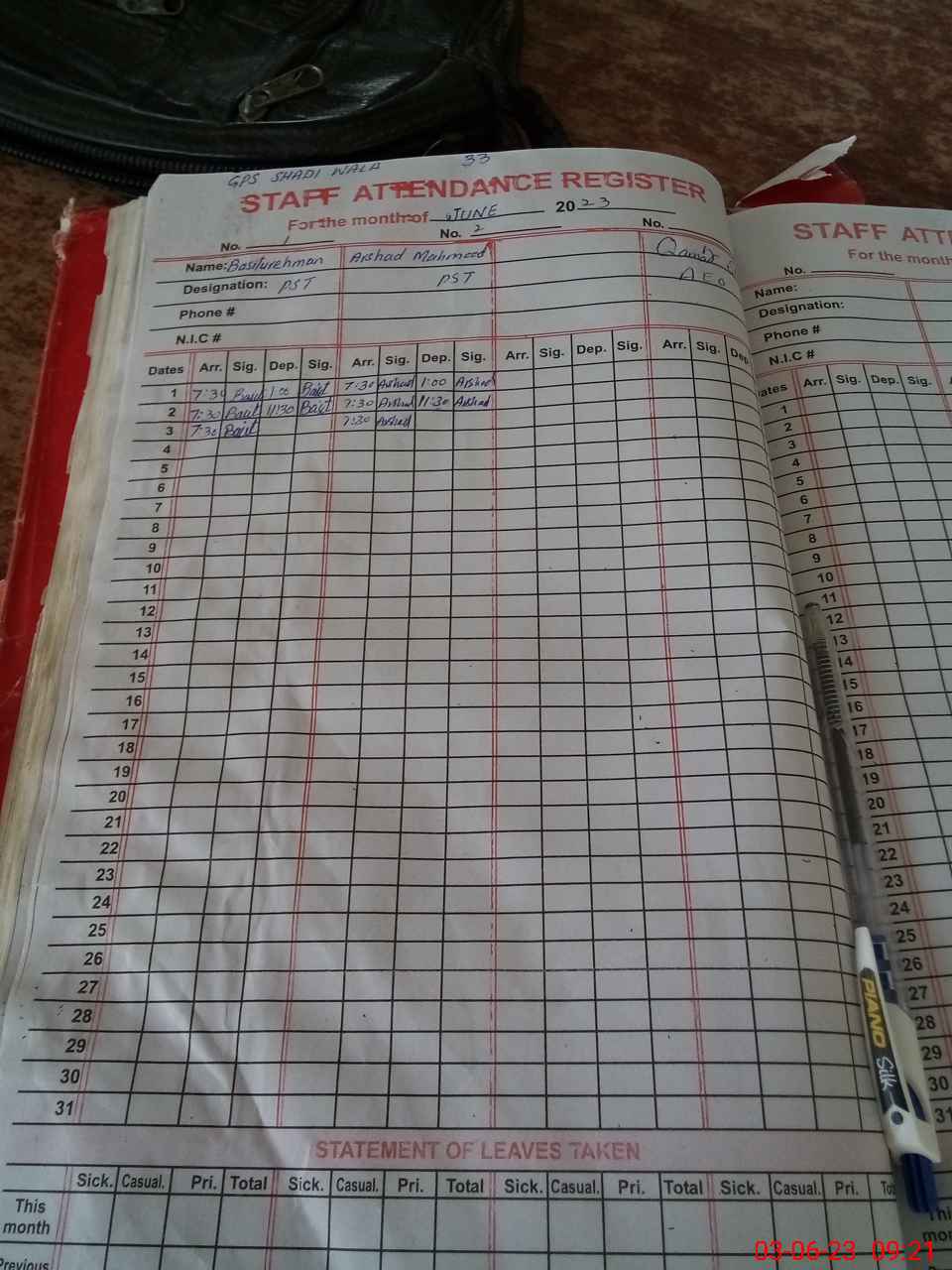 | Name: BA**** URRE**** Designation: (School Headmaster's/Headmistress's) PST Phone/Cell Number: 03**** |