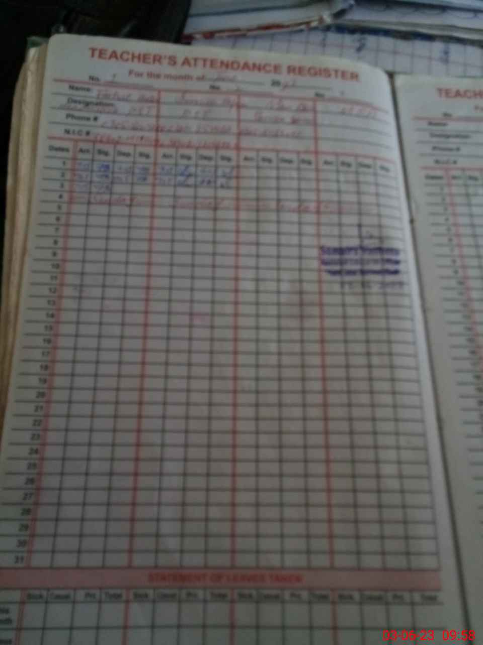 | CNIC | Full Name | Designation | R/C | Absence During Last Calender Month |