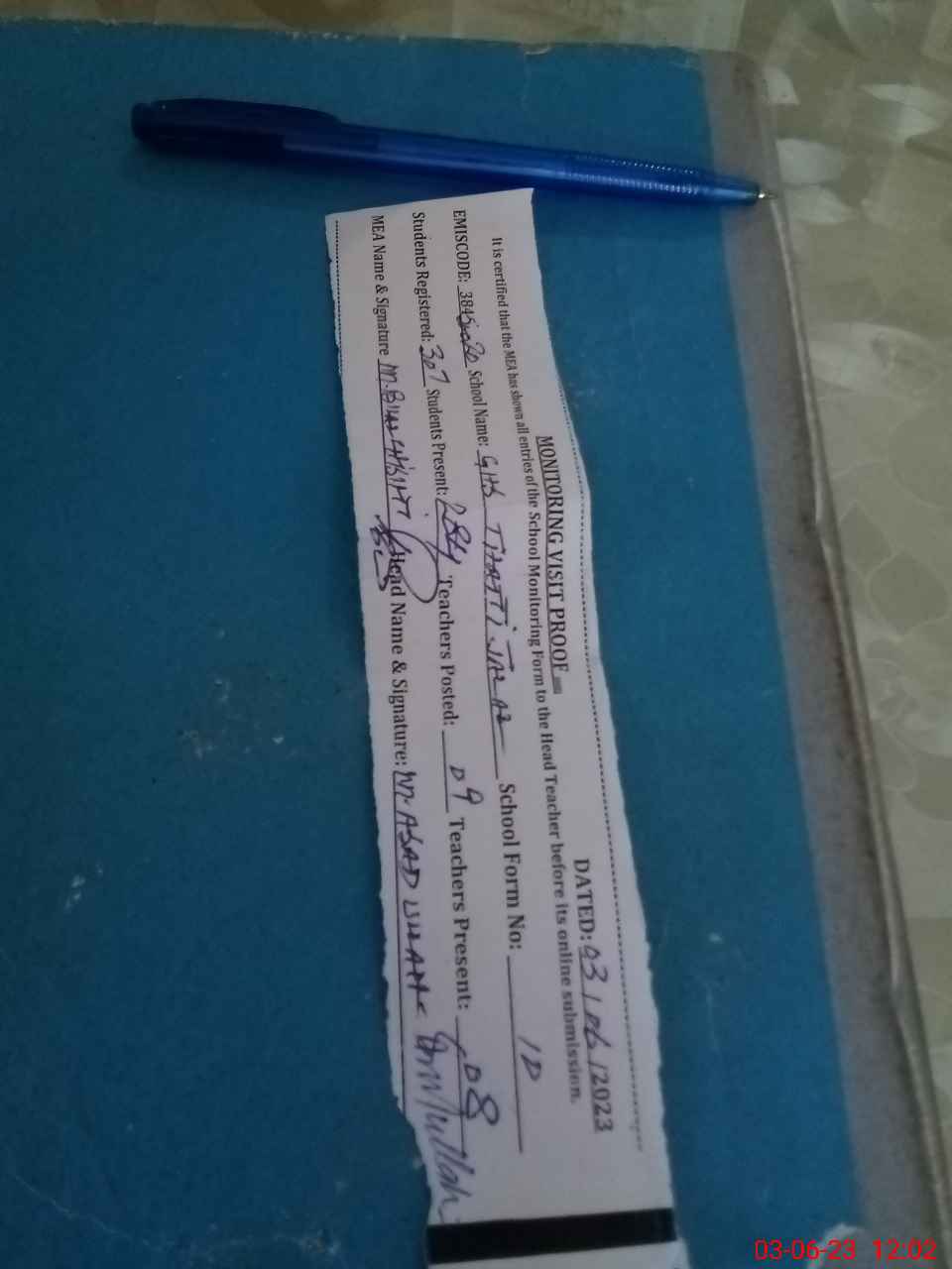 | EMIS Code: 38450020 | Name of School: GHS THATHI JALAL | |||
