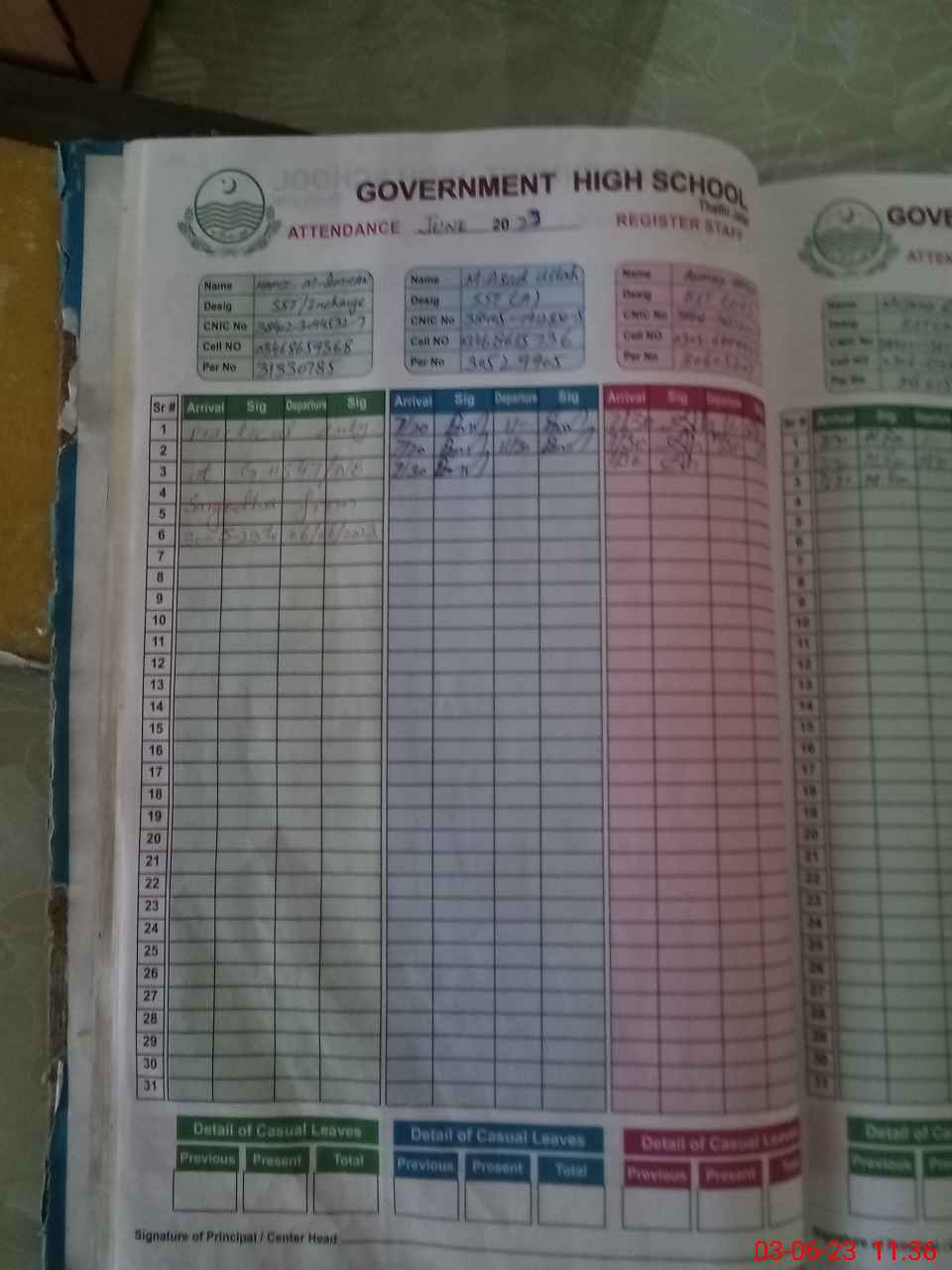 | Name: HA**** MU**** IM**** Designation: (School Headmaster's/Headmistress's) SST SCIENCE Phone/Cell Number: 03**** |