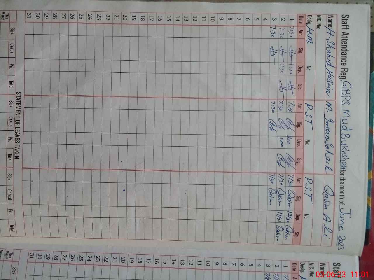 | Name: HSH**** HU**** Designation: (School Headmaster's/Headmistress's) PST Phone/Cell Number: 03**** |